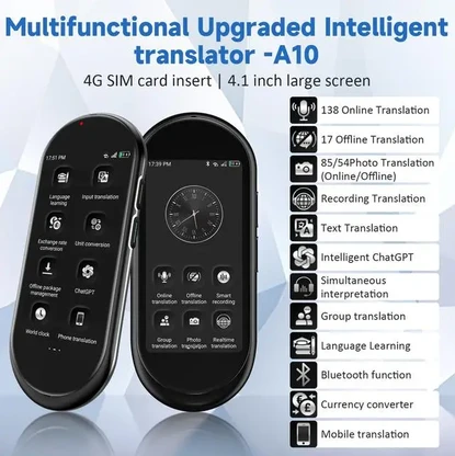 - Zařízení pro hlasový překlad, do kterého lze vložit SIM kartu 4G: Tento jazykový překladač podporuje více způsobů přístupu k internetu, podporuje WIFI/hotspot a lze do něj vložit i SIM kartu (není součástí balení). Překladové zařízení kombinuje čtyři inteligentní překladové motory se 137 vysoce přesnými jazyky překladu a 17 jazykově přesnými offline překlady. Jazykový překladač dokáže rychle reagovat do 1 sekundy a poskytuje přesnost překladu 98 %.